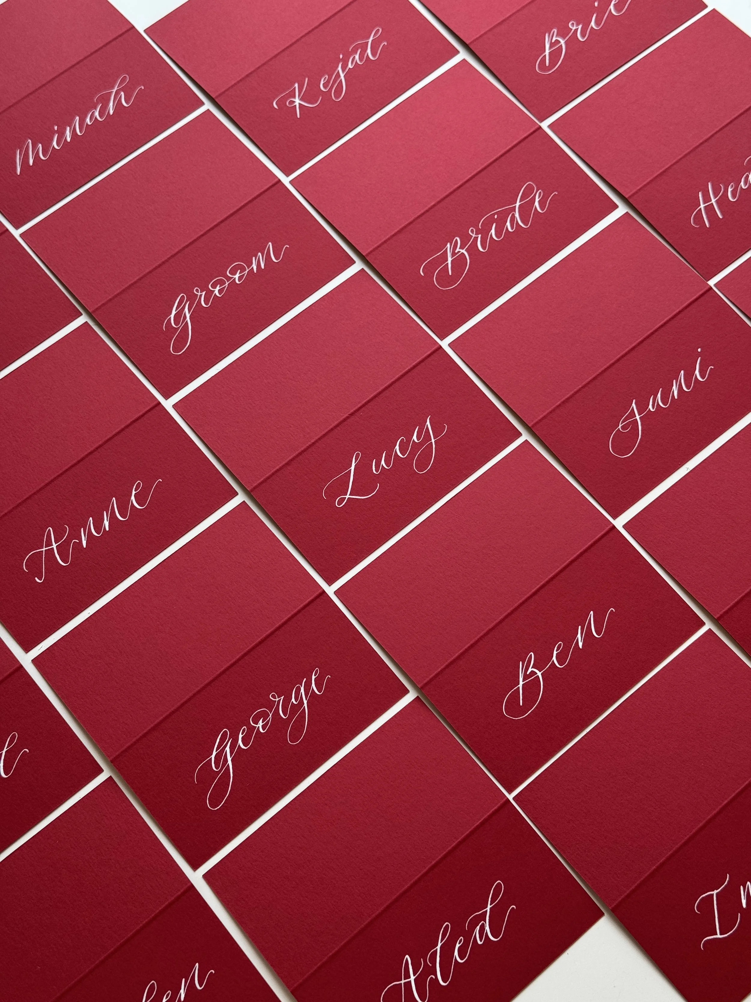 Hand calligraphed using traditional nib and ink, every place card is unique. Lots of shapes, colours & sizes to choose from. Gorgeous shapes can be found here